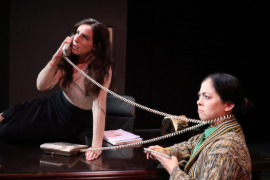 Patrick Anthony, Hudson Long, Melissa Lugo, Bob McCollum, and Kevin Michael Moran do well in their featured roles in a cast completed by UBS newsroom staffers Linda Alznauer, Ken Dixon, Jr., Idelis Hernández, Angie Lin, Tom O’Shea, Stevie Stern, and Sylvie Wiley. (Though given program credit no different from their onstage counterparts, Sherrick O’Quinn, Danny Salay, Amy Shaughnessy, and Cathy Diana Tomlin appear only in a brief, prerecorded news report on a Patty Hearst-style kidnapping.)
