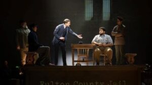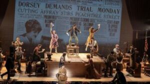 The story composer-lyricist Brown and book writer Alfred Uhry have to tell is sadly no figment of their imagination, and one of director Arden’s most inspired concepts is to back his thrillingly stylized staging with historical photographs of those involved in this miscarriage of justice and of the newspaper headlines they generated.