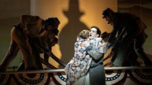 Still, as powerful as Act One has been, it’s after intermission that Parade achieves its greatest impact as Lucille, initially unwilling even to remain in town for her husband’s trial, let alone attend it, now becomes Leo’s fiercest advocate, and Leo and Lucille’s love story becomes one for the ages.