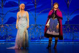 Frozen The Broadway Musical expands upon its 90-or-so-minute-long source material with new songs (by Kristen Anderson-Lopez and Robert Lopez) and new scenes (book by Frozen screenwriter Jennifer Lee) that deepen and darken the relationship between sister heroines torn apart by one sister’s magic abilities that turn out to be more curse than gift.