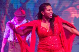 Fiasco Theater, for example, trimmed the cast down to about half the size of the Broadway original and replaced a 24-piece orchestra with a single onstage piano and cast members doubling as musicians.