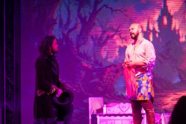 Christopher Thume turns Cinderella’s Stepmother into the wildest (and wildest-haired) of drag queens in addition to doubling darkly as Mysterious Man (a role customarily played by the Narrator), and a fabulous Trae Adair is not only Rapunzel’s dashing Prince but Little Red’s crotchety Granny and the a take-charge Steward. (Cinderella’s Father has been left on the cutting room floor.)