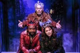 Vandecar signals from the get-go that we won’t just be spending time on the planet we call Earth when he introduces us in the play’s prologue to Grael (Stephanie Erb), “dragon ruler of the Northern Hemisphere,” Naelyan (Arthur Hanket), “provider of god given water,” and Fafnir (Andre G. Brown), “what gives you light,” a trio of horned and headdressed creatures who’ve got quite the announcement to make to us Earthlings.