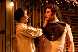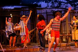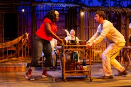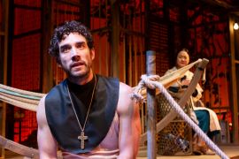 Scenic designer Tesshi Nakagawa evokes the tropical squalor of Maxine’s dilapidated inn while allowing us to glimpse inside its ramshackle rooms, Denitsa Bliznakova’s costumes define each character to perfection, and Kaitlin Trimble’s lighting is at once dramatic and subtle.