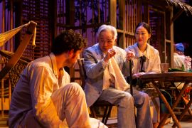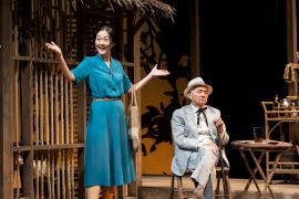 Sexual shenanigans are the last thing on the mind of Hannah Jelkes (Jully Lee), a 40ish spinster who’s shown up at the Costa Verde accompanied by her 97-year-old grandfather Jonathan Coffin (Dennis Dun), aka Nonno, aka “the world’s oldest living and practicing poet,” with hopes of selling enough of her watercolors to pay for their stay, a task more easily said than done.