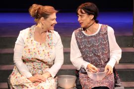 Director/set designer Mareli Mitchel-Shields does all this right (the Group Rep stage has never looked as expansive as it does here stripped bare of everything but some chairs, tables, and a pair of movable staircases and letting our imaginations do the rest), and the actors do a credible job of performing household tasks minus props. (I also appreciated the seamlessness the director gives the transition from Act Two’s joy to Act’s Three’s sorrow.)