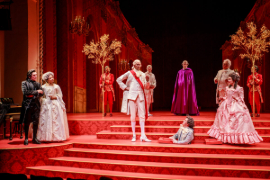 Not so Danny Feldman’s Pasadena Playhouse, which has pulled out all the stops in delivering a big-stage, big-budget revival that merits oodles of oohs and an abundance of aahs, and not just because the Playhouse has outdone itself where production design is concerned, the stage positively bursting with the red-and-gold pomp and splendor of an imperial palace.