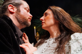 Charles A. Duncombe is once again a jack of all trades as set, lighting, and audio designer (and uncredited stage manager), Josephine Poinsot’s costumes are elegantly situated somewhere between then and now, and Anthony Sannazzaro has contributed some lovely video/projection designs.
